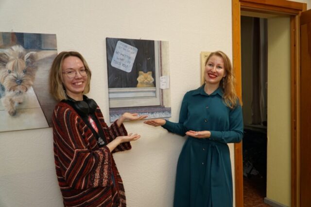 Sestdien, 25. oktobrī RCB filiālbibliotēkā “Pārdaugava’’ (Dzirciema ielā 26) tika svinīgi atklāta studijas “Krāsu deja” izstāde “Starp otu triepieniem”.
