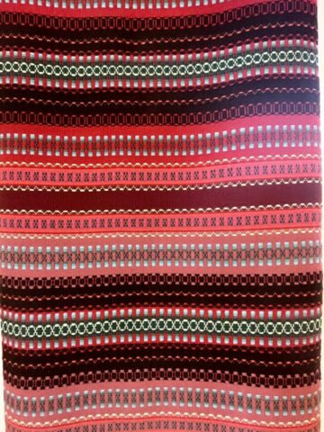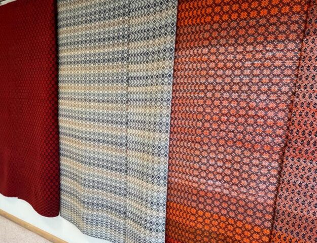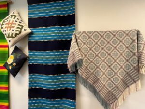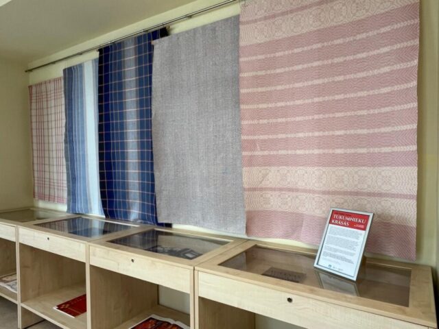 Studijas dalībnieces izveidojušas šo nelielo izstādi priecīgā noskaņā un izrāda daļiņu no sava veikuma. Ekspozīcijā var apskatīt segas – piņķerīgās, bet ļoti interesantās Kurzemes ķēžu, dubultplatās šatiersegas, raibu raibās ziedainās segas, kā ar sniegu apsnigušās Viļumsona pusautomātiskajās stellēs austās zvaigžņu segas, lielo plecu lakatu, smalkus lina dreļļu galdautus un pirts dvieļus, kā arī dažus košus spilventiņus.