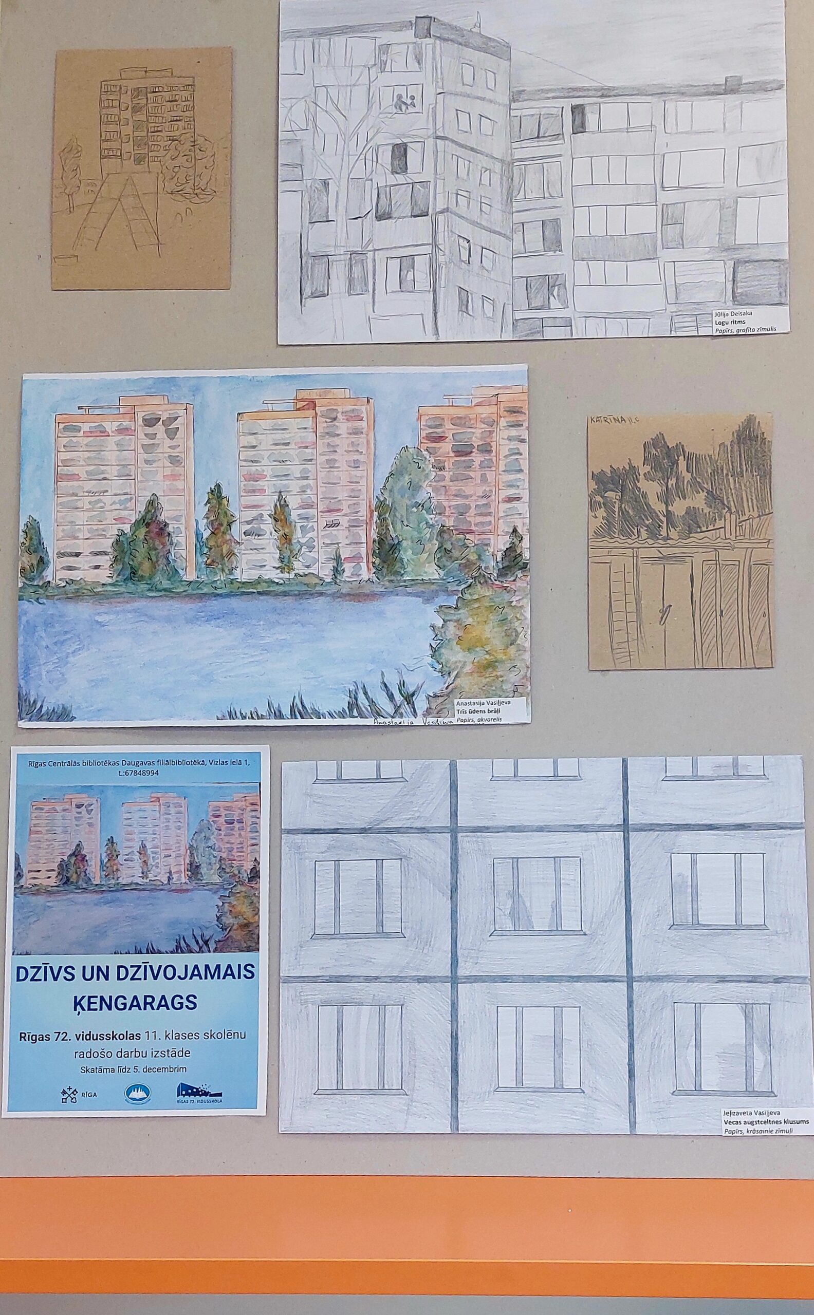 Līdz 5. decembrim Rīgas Centrālās bibliotēkas Daugavas filiālbibliotēkā (Vizlas ielā 1) skatāma Rīgas 72.vidusskolas 11.klases skolēnu radošo darbu izstāde “Dzīvs un dzīvojamais Ķengarags”.