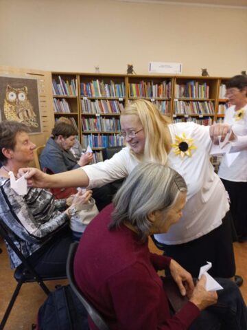Rīgas Centrālās bibliotēkas filiālbibliotēkā “Pūce” vienmēr gaidīti viesi ir teātra kopa “Saulespuķe”. 12. novembra rītā bibliotēkas apmeklētājiem tika dota iespēja ieklausīties Māra Čaklā dzejā uzvedumā “Es esmu bagāts”.