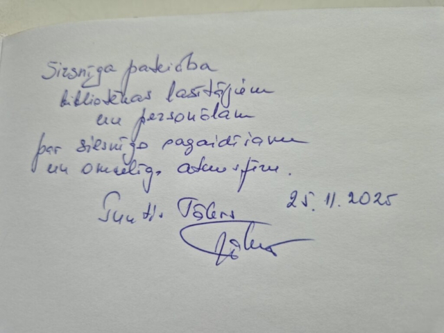 25. novembrī Rīgas Centrālās bibliotēkas Juglas filiālbibliotēka notika tikšanās ar rakstnieku Gunti Tāleru.