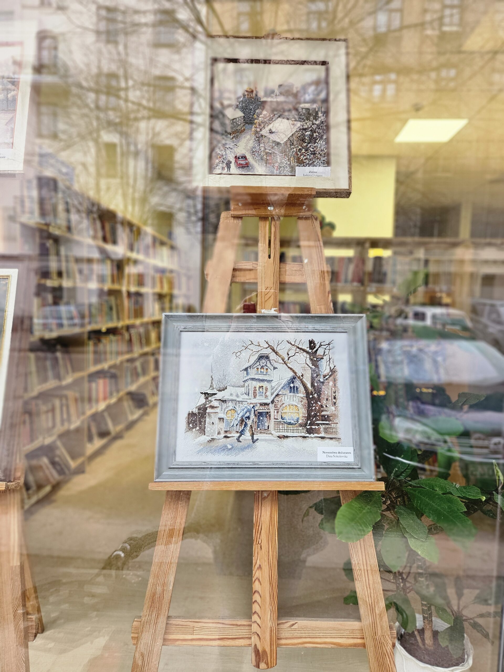 Mēs aicinām jūs baudīt izstādītās gleznas jebkurā jums ērtā laikā. Bibliotēkas darba laiks: O: 11 – 19, T – Pk: 10 – 18, S: 10 – 17, P, Sv: slēgts.