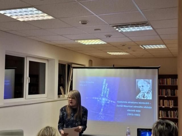 13.novembrī pirmās lekcijas tēma bija “Zentai Mauriņai adresētās zemē atrastās vēstules vāciski”. 27.novembra lekcijas tēma bija Zentas Mauriņas pēdējo 20 gadu draudzības.