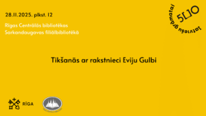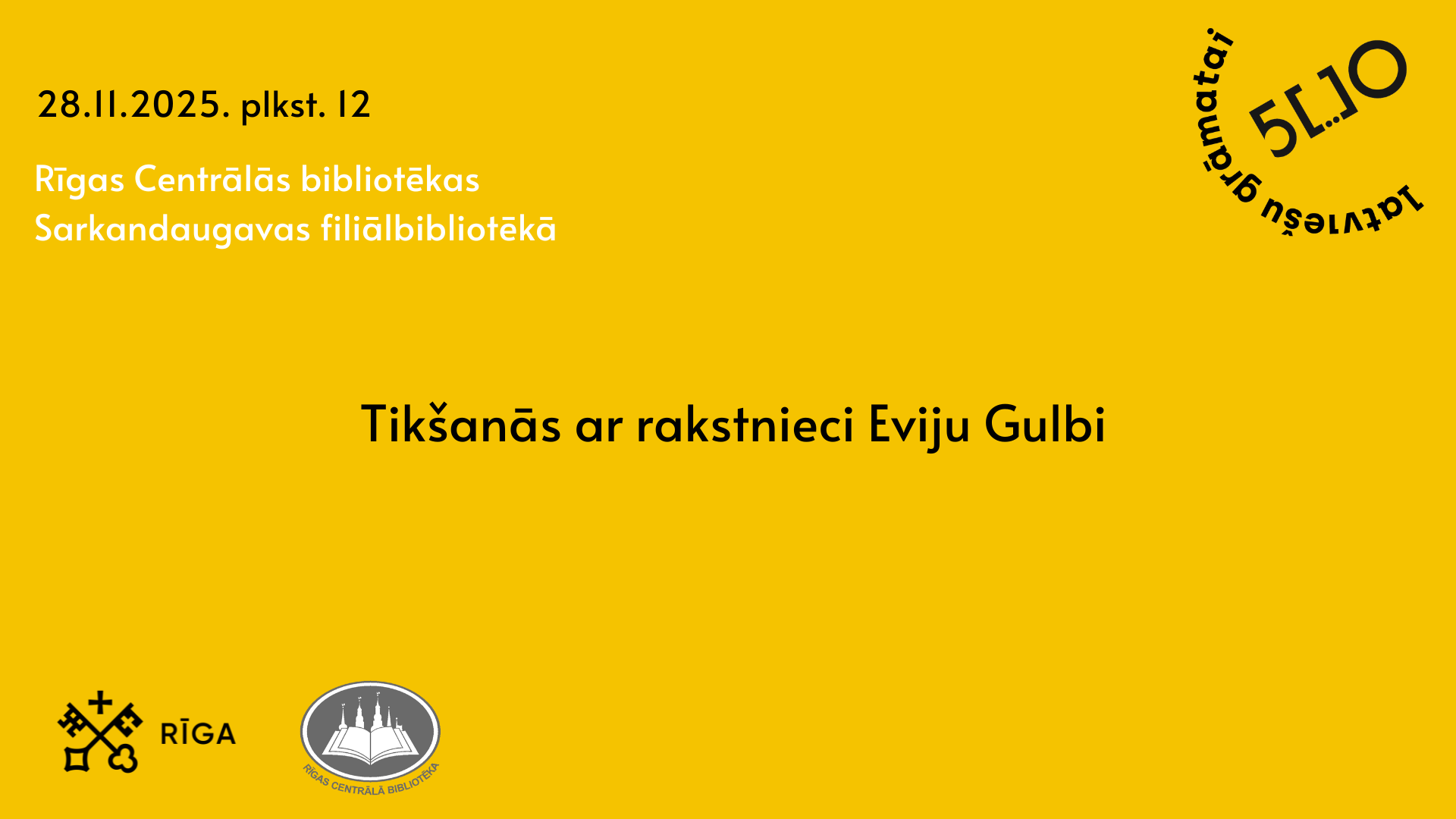 28. novembrī plkst. 12.00 Rīgas Centrālās bibliotēkas Sarkandaugavas filiālbibliotēka (Aptiekas iela 14A) aicina uz tikšanos ar rakstnieci Eviju Gulbi.