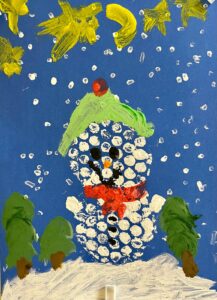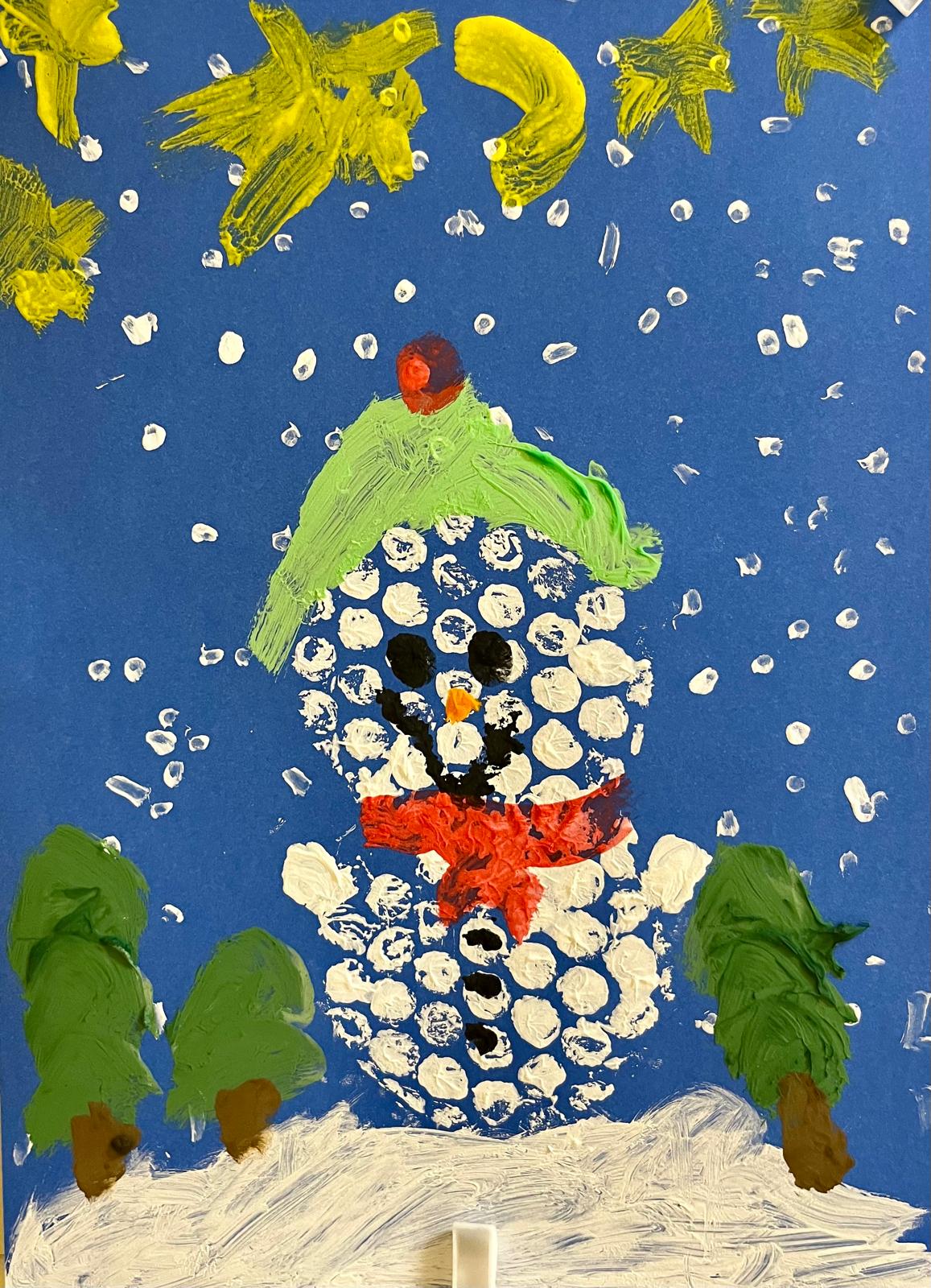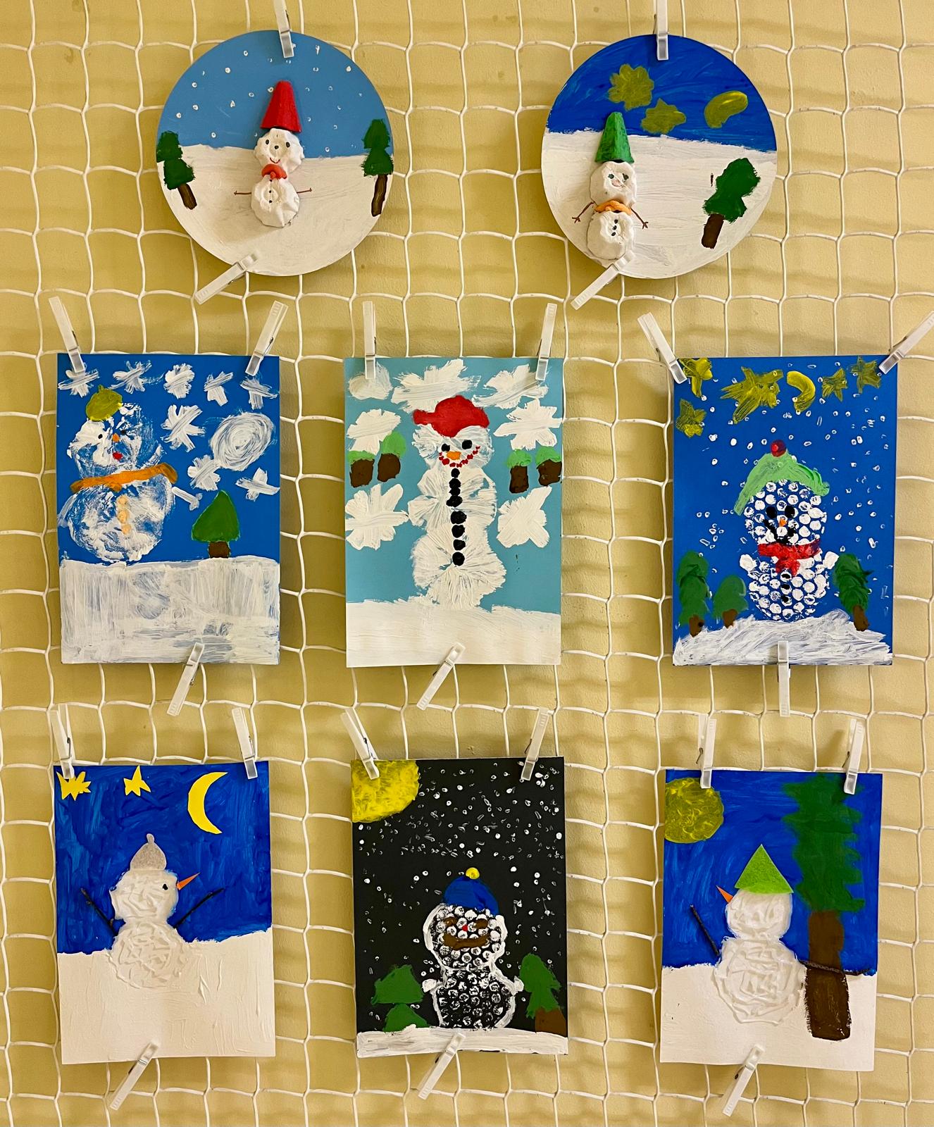 Dzīvespriecīgie, dažādās tehnikās veidotie bērnu darbiņi apmeklētāju uzmanību piesaista ar formu, krāsu un materiālu izvēli. Tie rosina iztēli un ieved sniegotā ziemas pasakā.