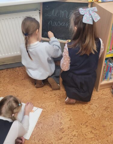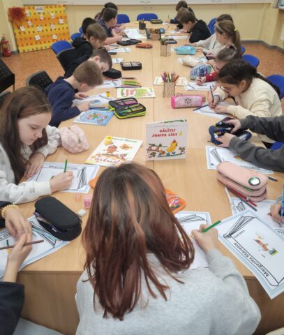 Pasākumu nobeigumā skolēni paši veidoja ilustrācijas pēc Margaritas Stārastes pasaku motīviem.