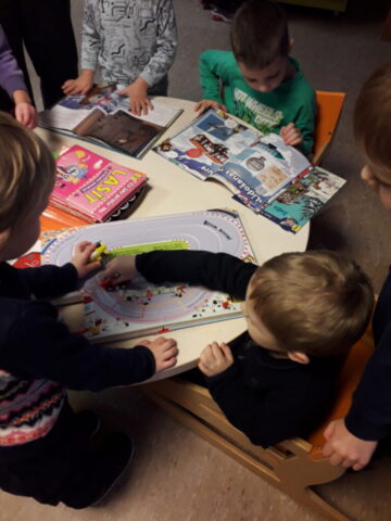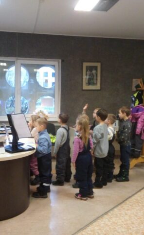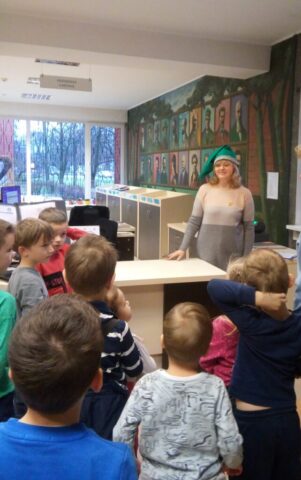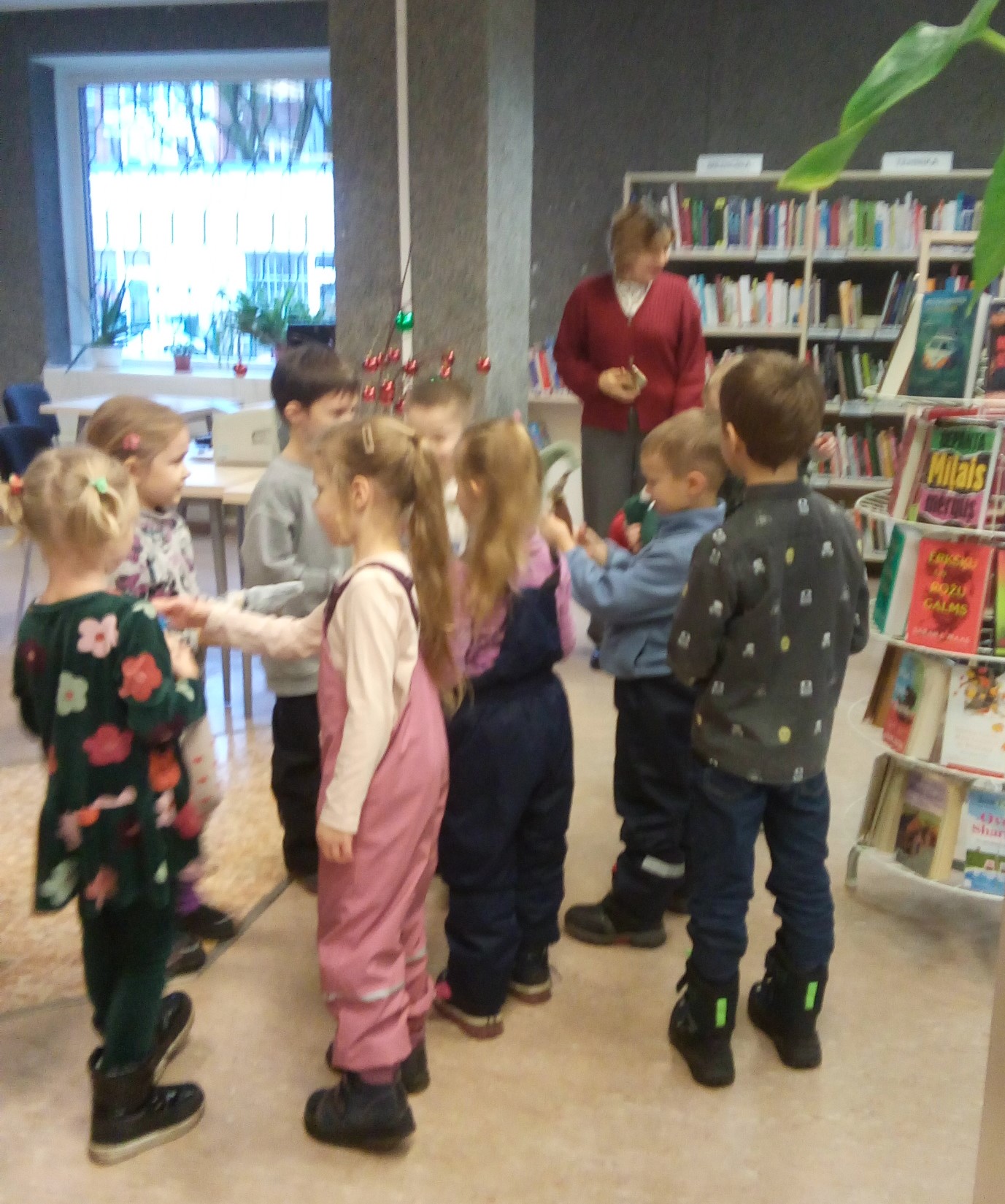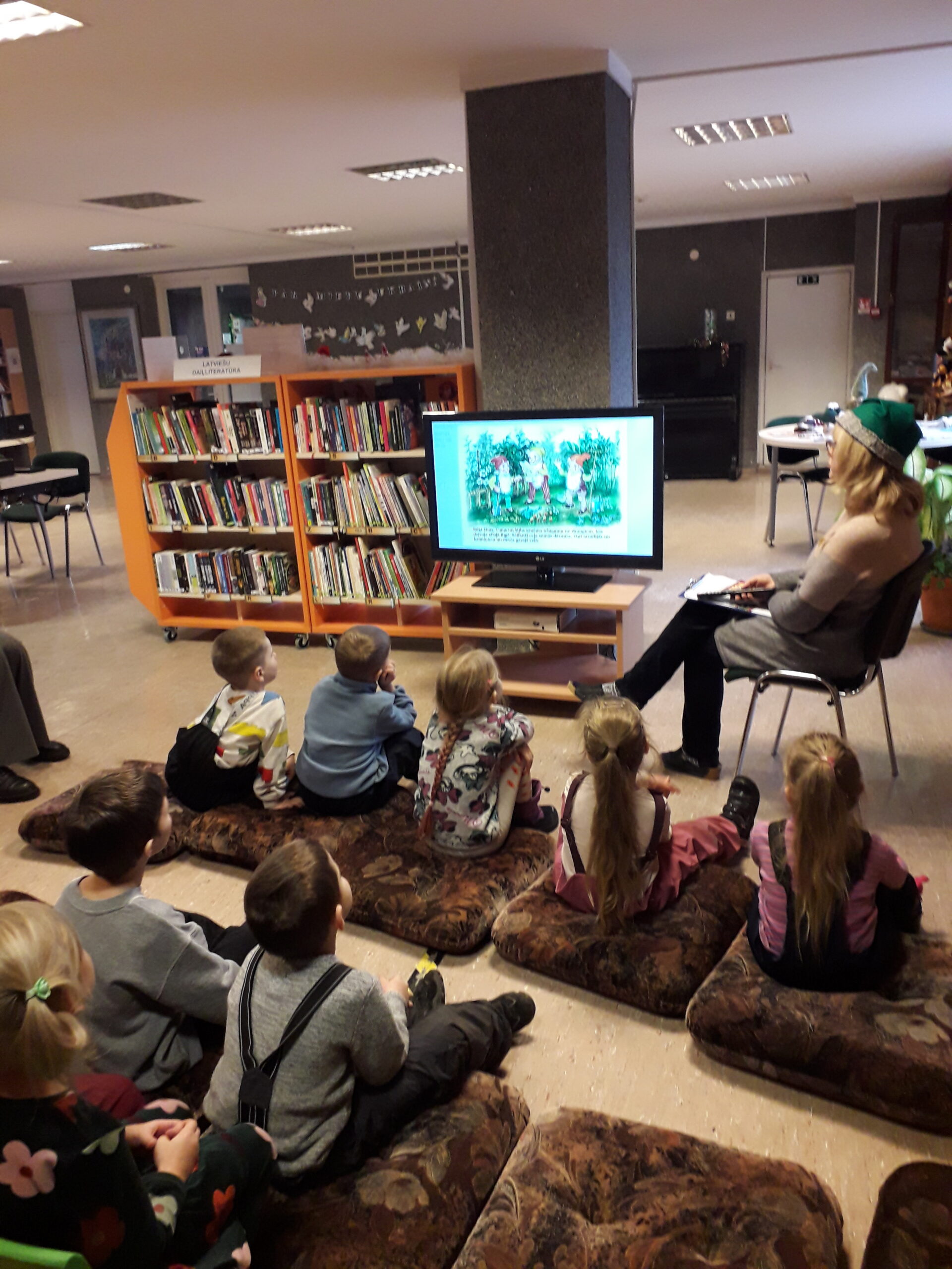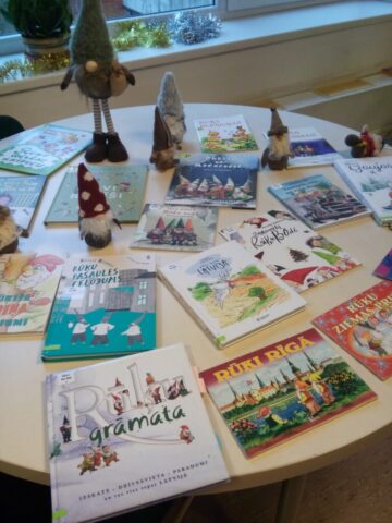 Rūķi bija atnākuši ciemos uz bibliotēku un paslēpušies starp grāmatām. Bērni tos gāja meklēt un atrada.