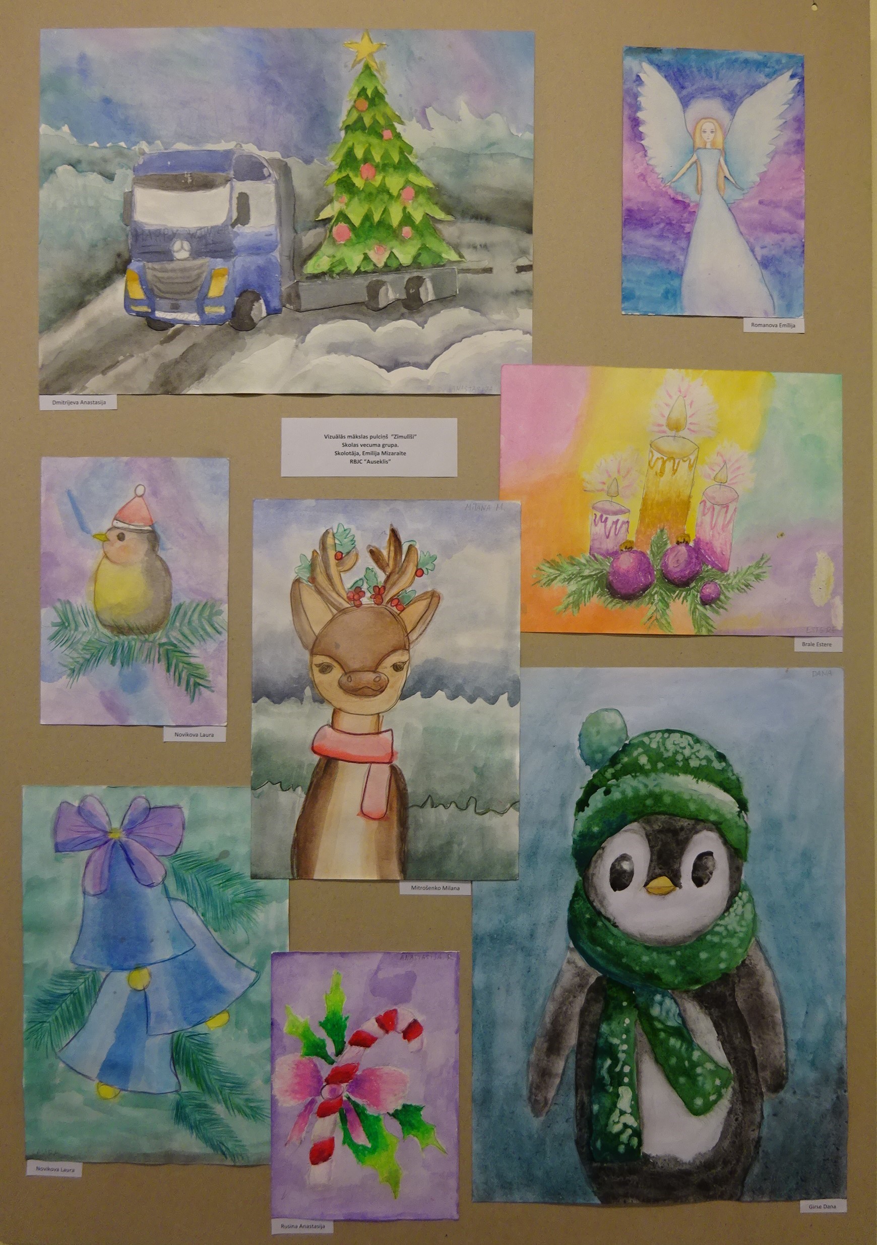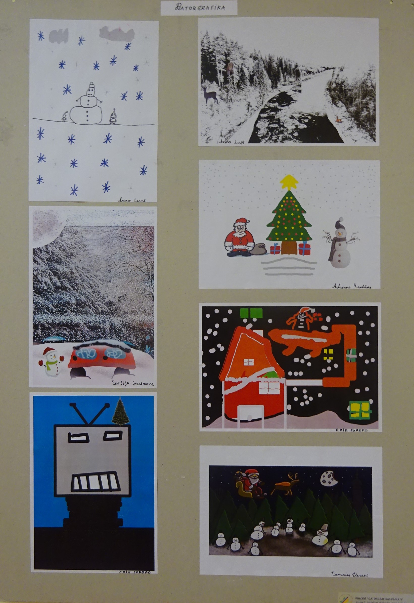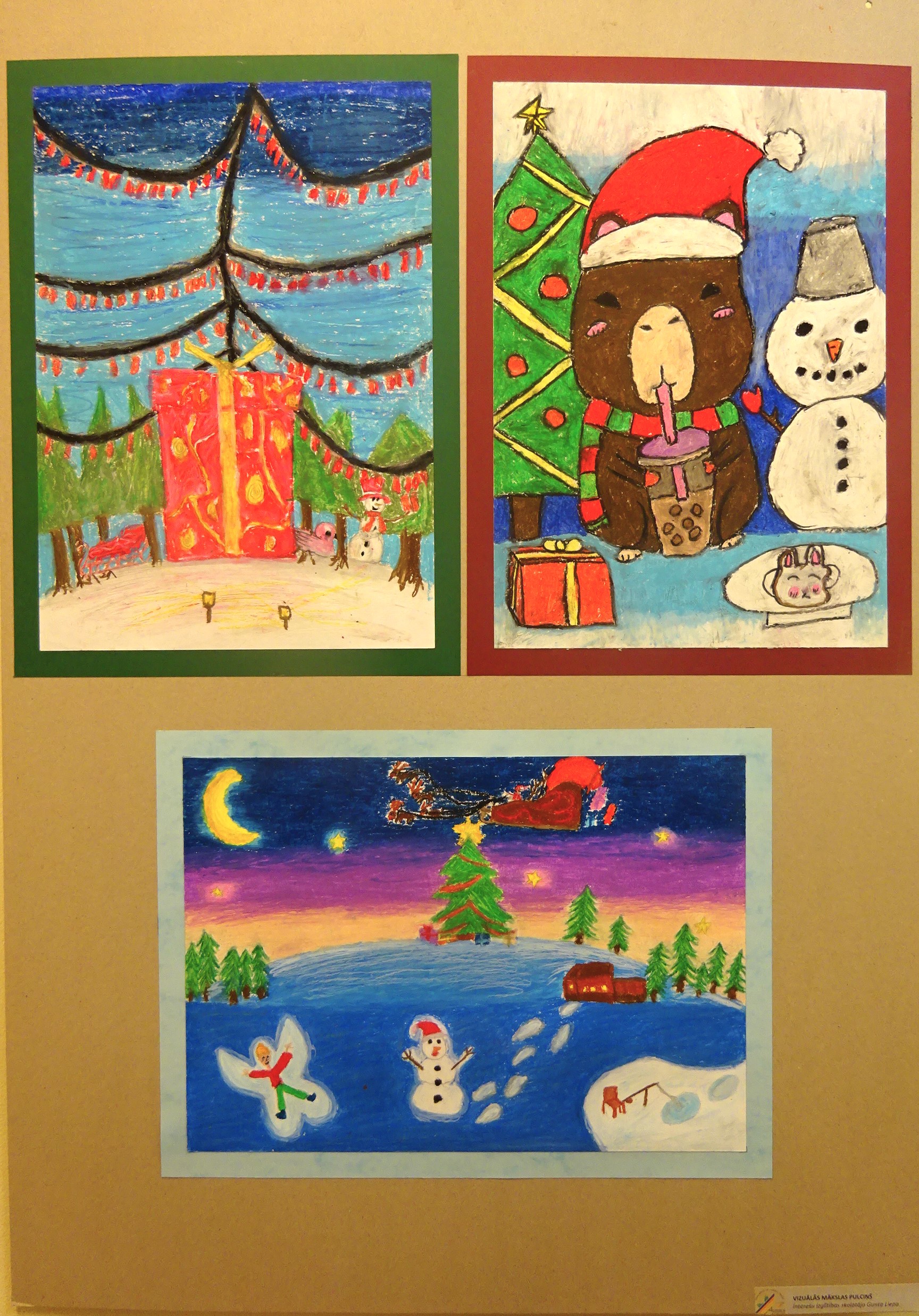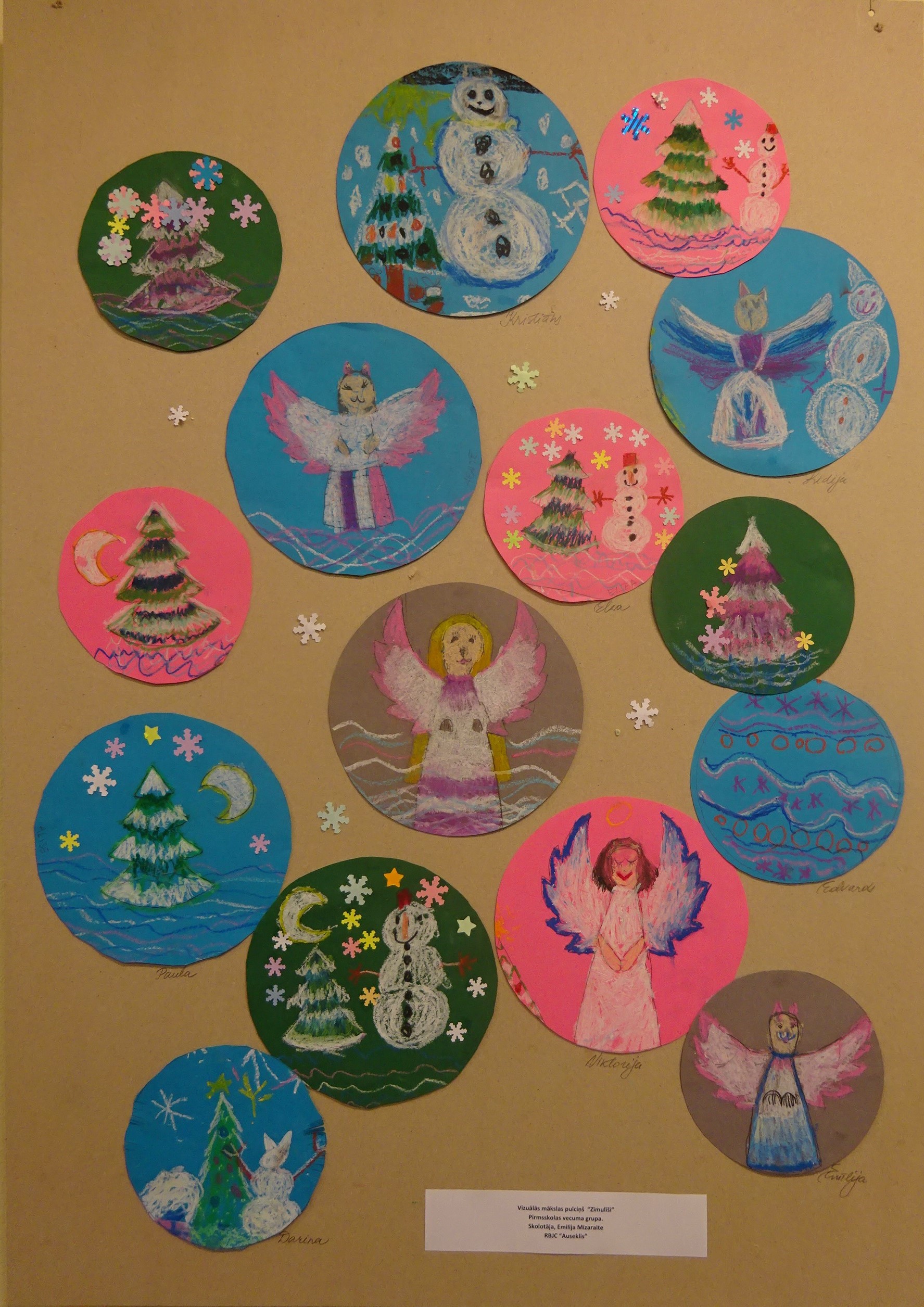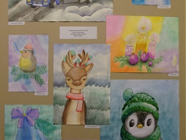 Un bērni ar savu izstādi atbild: “Jā, pie mums ir atnākusi baltā un saltā ziema, ko tomēr gaidām, jo var braukt ar ragaviņām, slēpēm un slidām, celt sniegavīrus, pagriezt seju pret ziemas sauli un pikoties! Mums ziema patīk!”