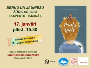 Tiksimies 17. janvārī pl. 15.30, lai ielūkotos latviešu rakstnieces Lauras Vinogradovas grāmatā “Pauls spēlē” un pārrunātu par citām izlasītajām “BJVŽ 2025” kolekcijas grāmatām.
