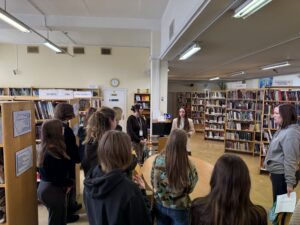 Ekskursijas laikā tika pastāstīts par RCB LAN krājuma daudzveidību un izvietojumu. Pie datora tika atspoguļots, kā lietot RCB katalogu (galvenās funkcijas) un 3td e-grāmatu bibliotēku. Ekskursijas beigās audzēkņi reģistrējās bibliotēkā.