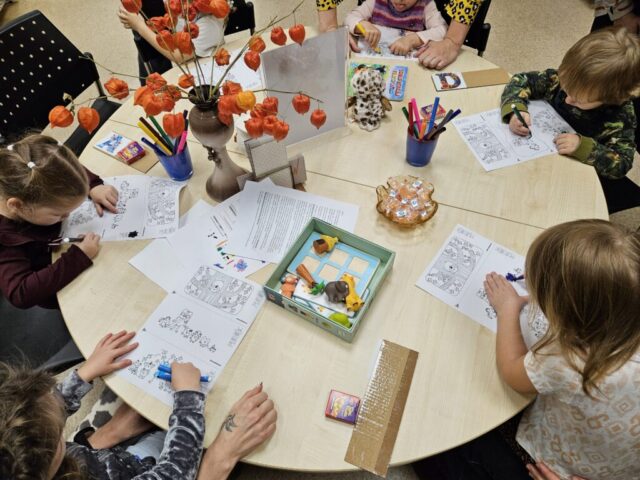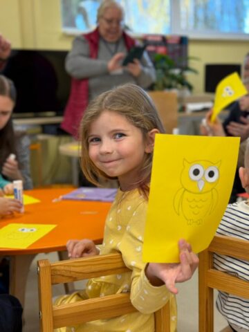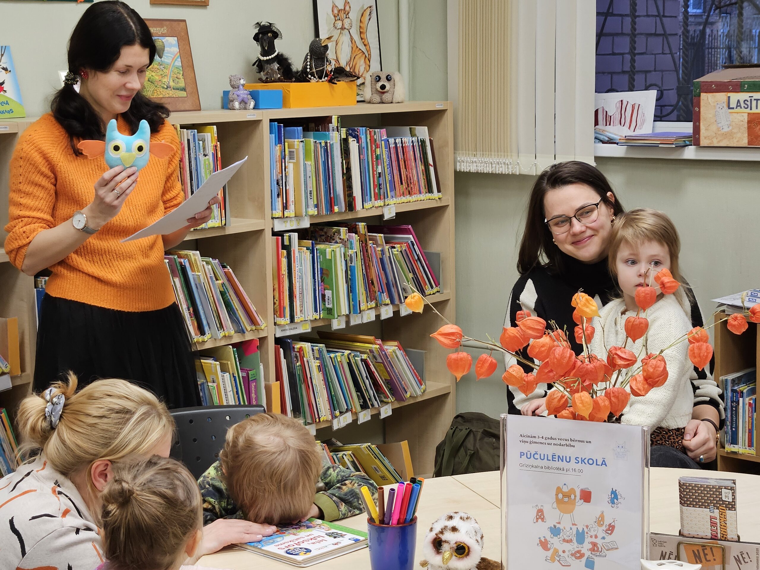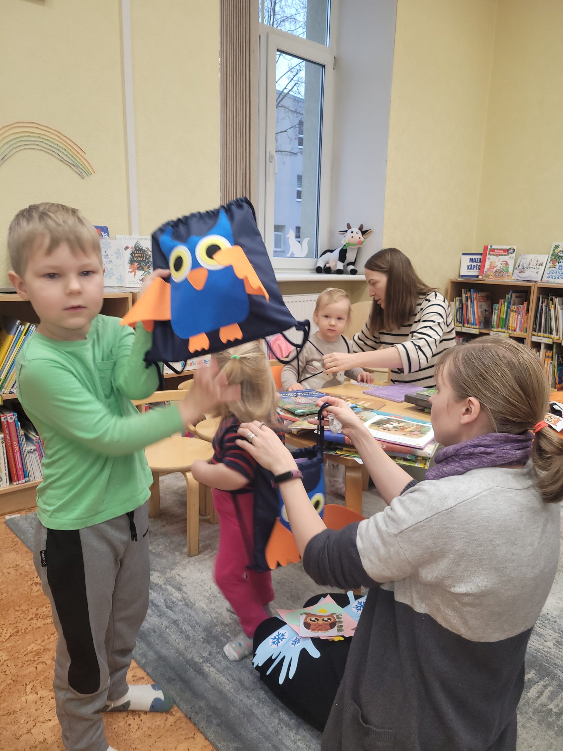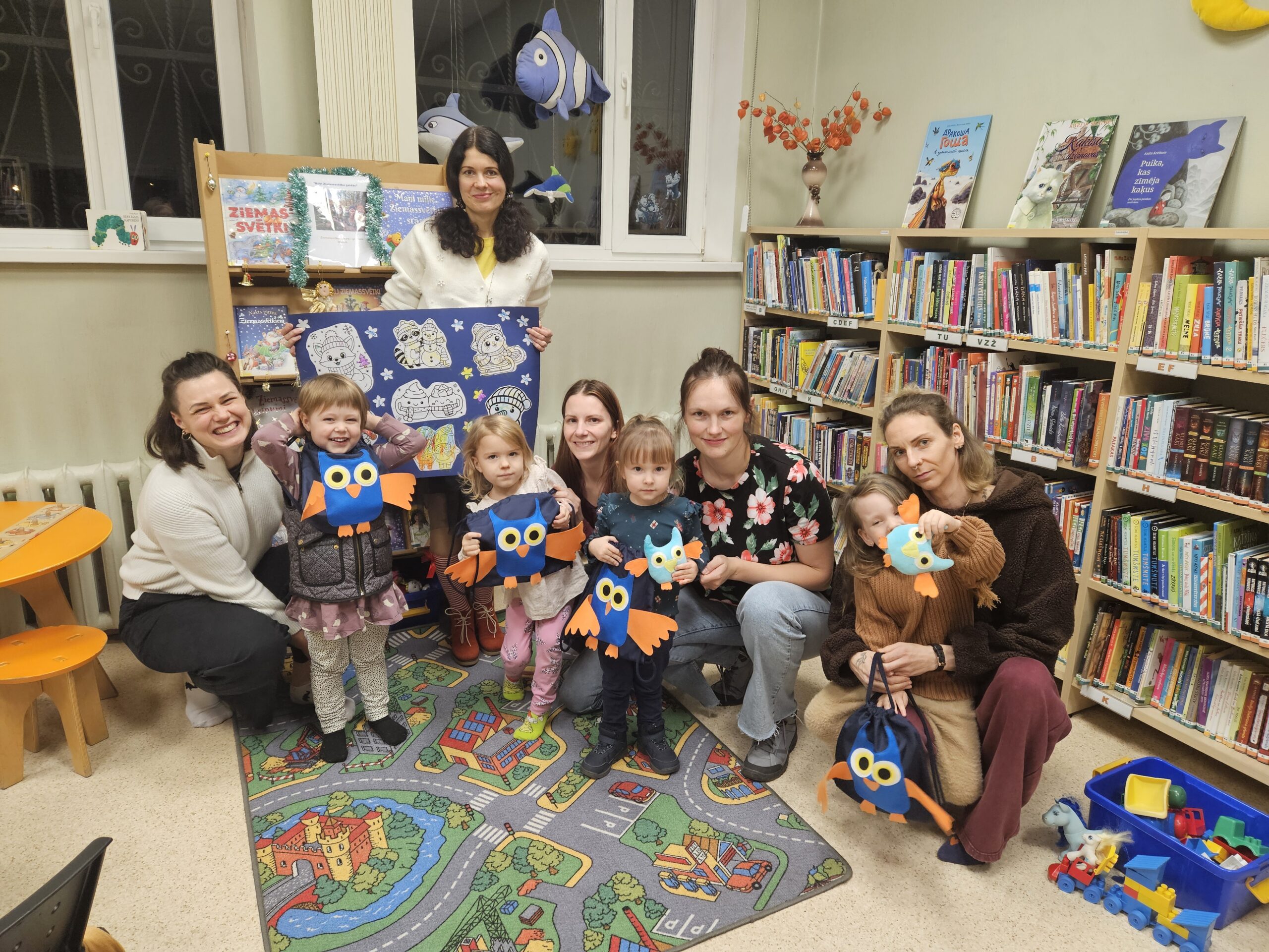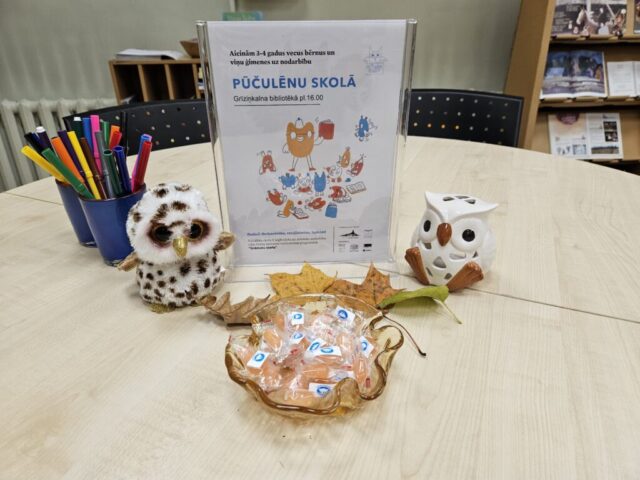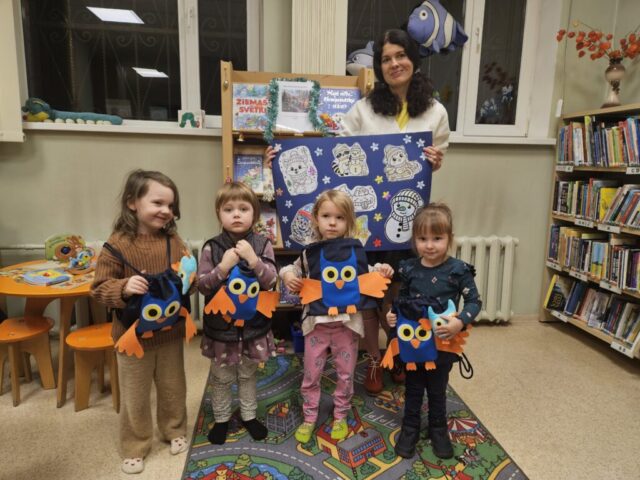 Aizvadītajā gadā no oktobra līdz decembrim četrās “Pūčulēnu skolas” nodarbībās filiālbibliotēkā “Pārdaugava” (Dzirciema ielā 26) notika pasākumu cikls pirmsskolas bērniem par tēmām “Rudens ar grāmatu”, “Mācos lasīt kopā ar pūci”, “Mana Latvija”, kā arī “Pūcīte ziemas rītā”. Nodarbību laikā bērni piedalījās audiovizuālā satura aktivitātēs, atkārtoja alfabētu latviešu valodā. Mazie pūčulēni klausījās putnu balsis, lasīja vārdus pa zilbēm, iepazinās ar grāmatām par dabu, gadskārtu svētkiem, gadalaikiem, Latviju, tās putniem u.c. Bērni bija ļoti ieinteresēti un aktīvi piedalījās vizuālās mākslas nodarbībās, kas notika katra pasākuma beigās. Nodarbību noslēgumā bērni saņēma projekta dāvaniņas un kādu krāsaini gardu balviņu katrā no četrām vizītēm. Foto un teksts: RCB filiālbibliotēkas “Pārdaugava” galvenās bibliotekāres Linda Landsberga un Alina Monkus.