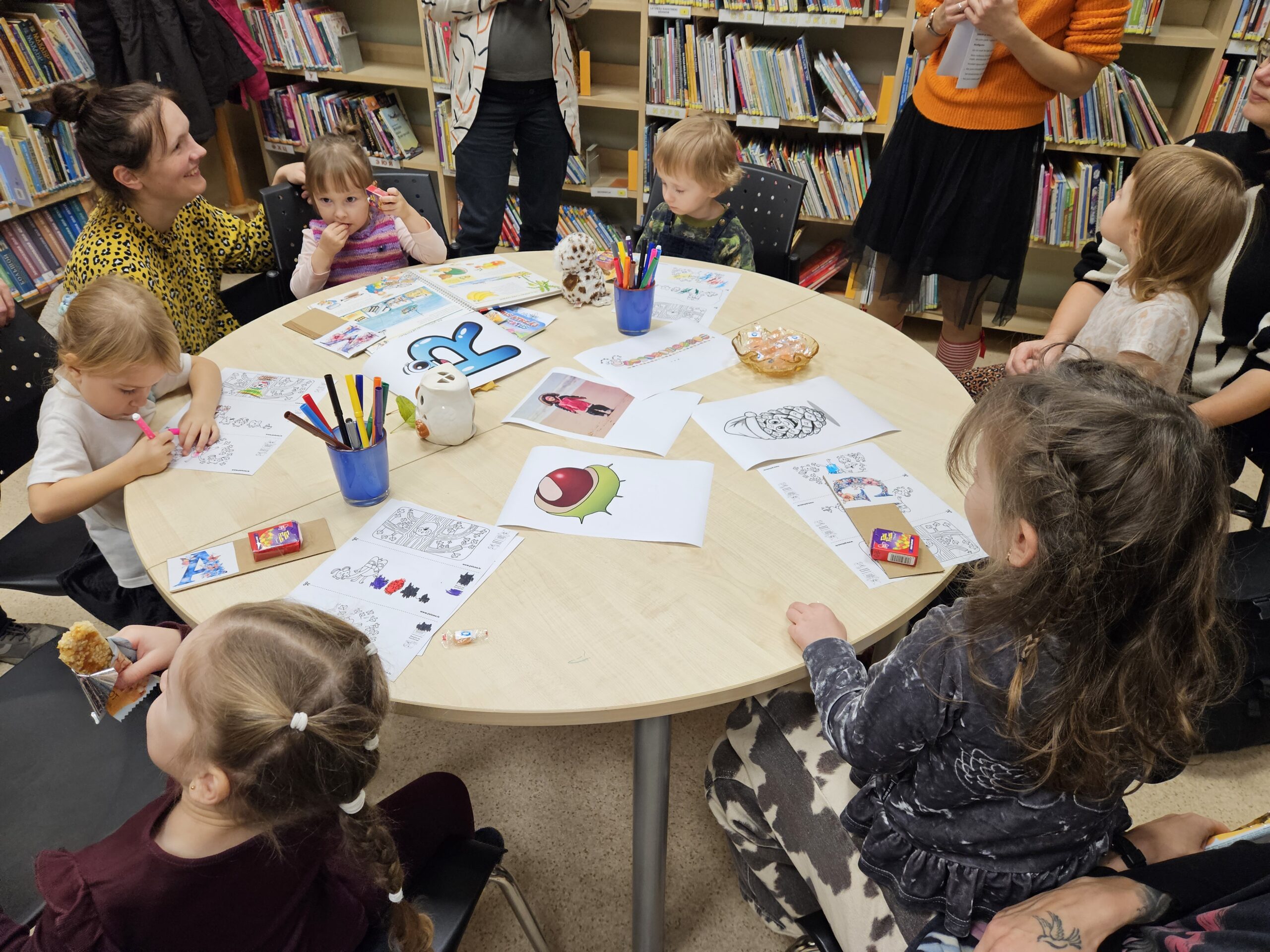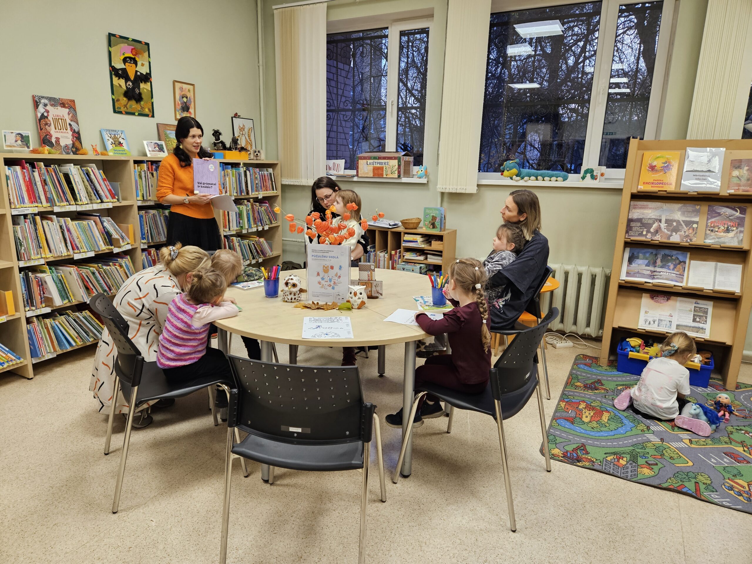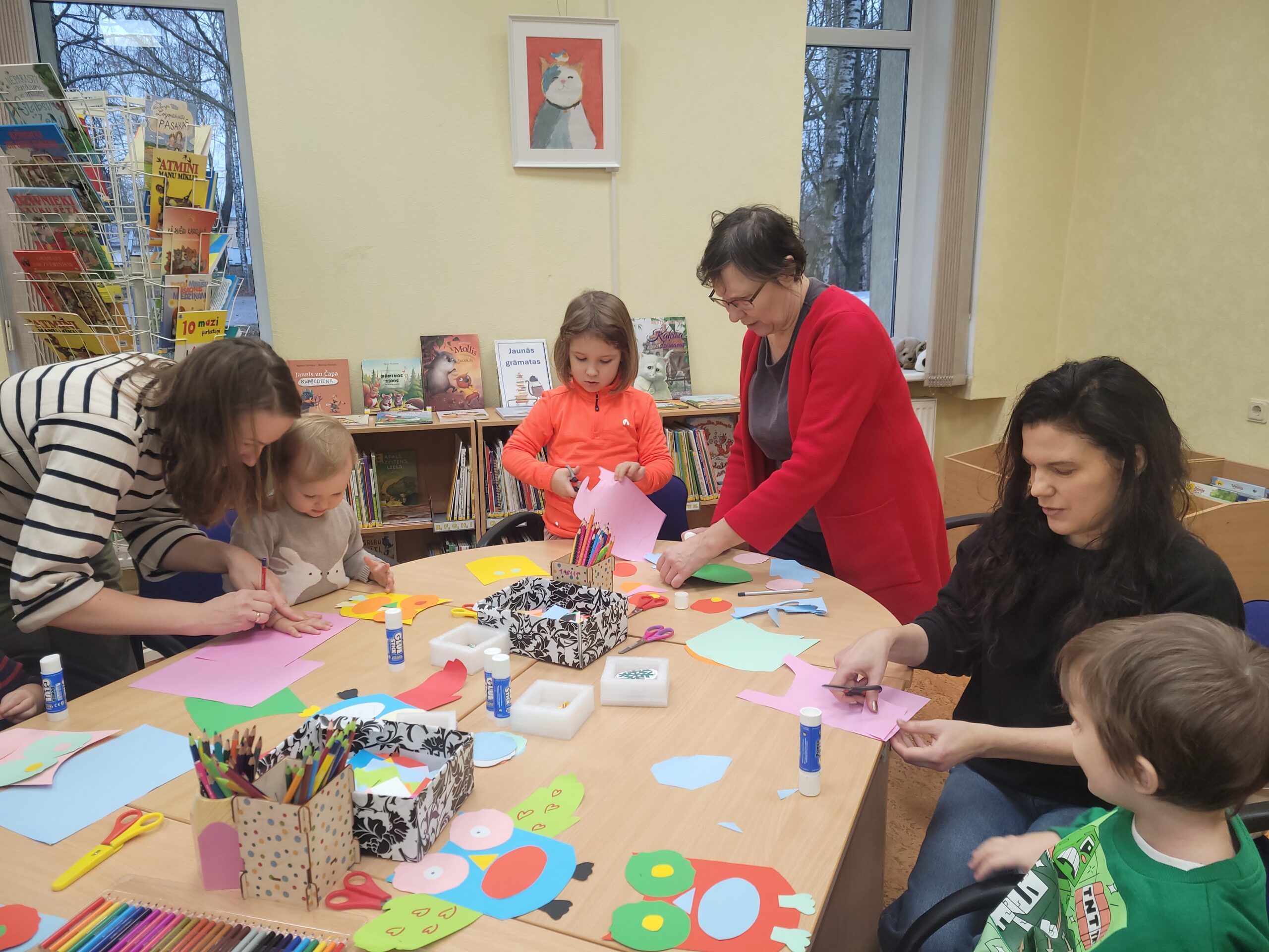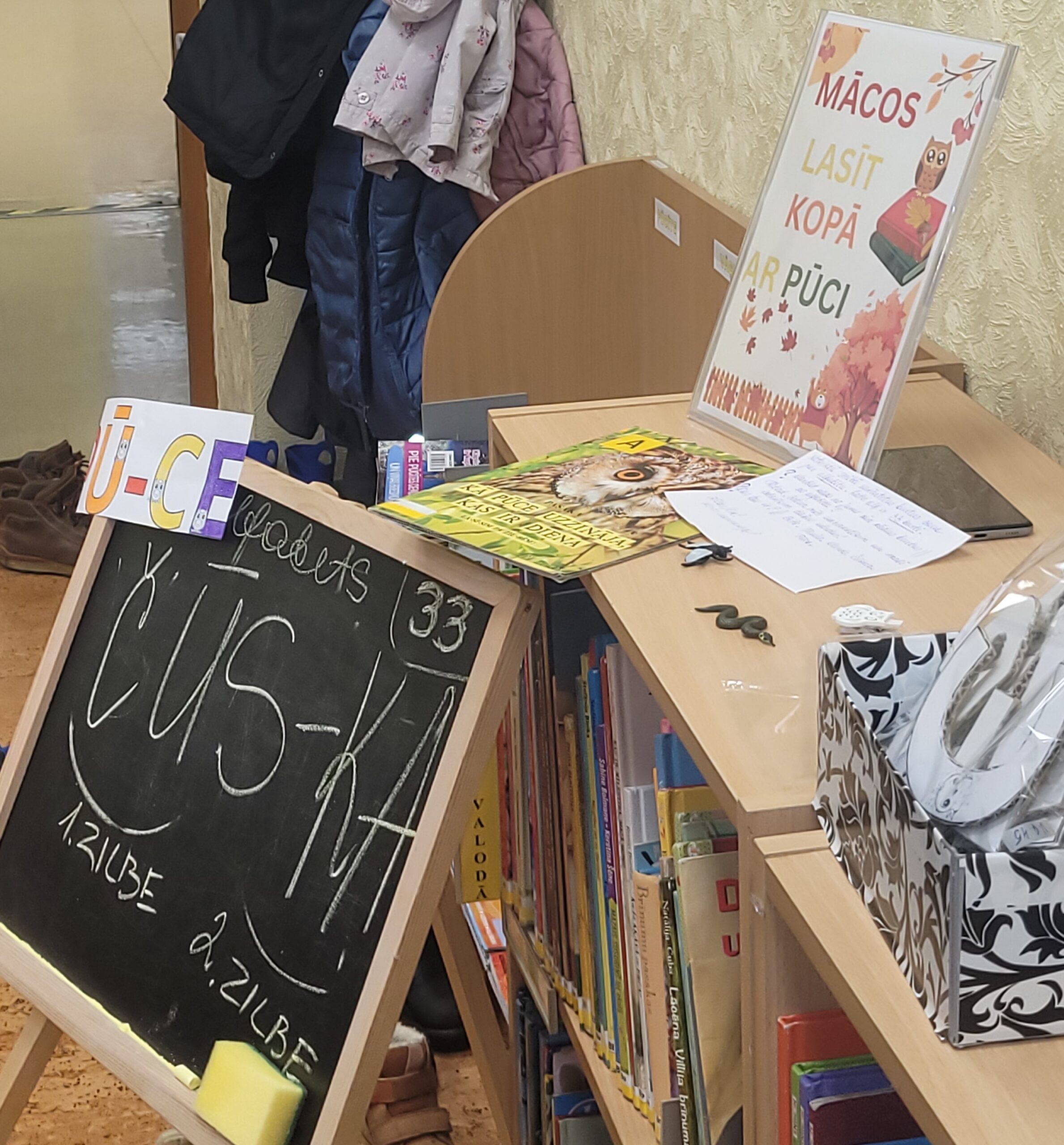Aizvadītajā gadā no oktobra līdz decembrim četrās “Pūčulēnu skolas” nodarbībās filiālbibliotēkā “Pārdaugava” (Dzirciema ielā 26) notika pasākumu cikls pirmsskolas bērniem par tēmām “Rudens ar grāmatu”, “Mācos lasīt kopā ar pūci”, “Mana Latvija”, kā arī “Pūcīte ziemas rītā”. Nodarbību laikā bērni piedalījās audiovizuālā satura aktivitātēs, atkārtoja alfabētu latviešu valodā. Mazie pūčulēni klausījās putnu balsis, lasīja vārdus pa zilbēm, iepazinās ar grāmatām par dabu, gadskārtu svētkiem, gadalaikiem, Latviju, tās putniem u.c. Bērni bija ļoti ieinteresēti un aktīvi piedalījās vizuālās mākslas nodarbībās, kas notika katra pasākuma beigās. Nodarbību noslēgumā bērni saņēma projekta dāvaniņas un kādu krāsaini gardu balviņu katrā no četrām vizītēm. Foto un teksts: RCB filiālbibliotēkas “Pārdaugava” galvenās bibliotekāres Linda Landsberga un Alina Monkus.