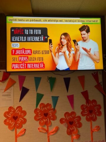 Pēcpusdienā sadarbības partneru telpās notika “Drošāka interneta diena 2026” pasākums, kura laikā dalībniekiem tika stāstīts par drošību internetā un to, kā sevi pasargāt digitālajā vidē. Pasākumā piedalījās pamatskolas audzēkņi, kuri ar interesi uzdeva jautājumus un aktīvi iesaistījās diskusijās. Piemēram, kā glabāt savu personisko informāciju – paroles, lietotājvārdus un citus datus un kā nekļūt par upuri interneta vidē. Bērni izspēlēja pareizo un nepareizo atbilžu spēli un noskatījās izglītojošu video.