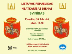 Lietuvas Republikas Neatkarības dienā, 16. februārī, plkst. 17.30 RCB Imantas filiālbibliotēkā (Slokas ielā 161 k-1) atkal notiks lietuviešu draugu klubiņa tikšanās.
