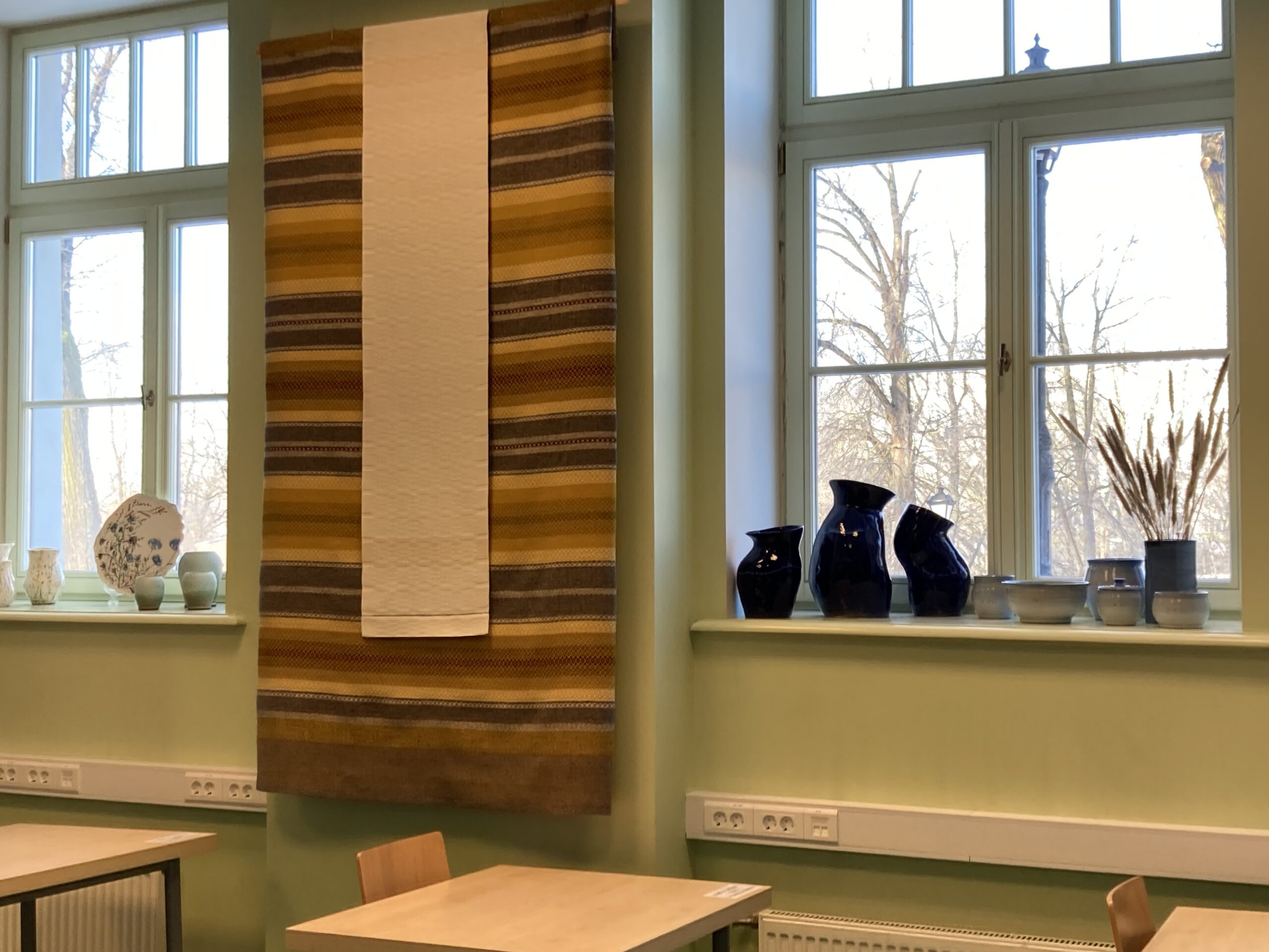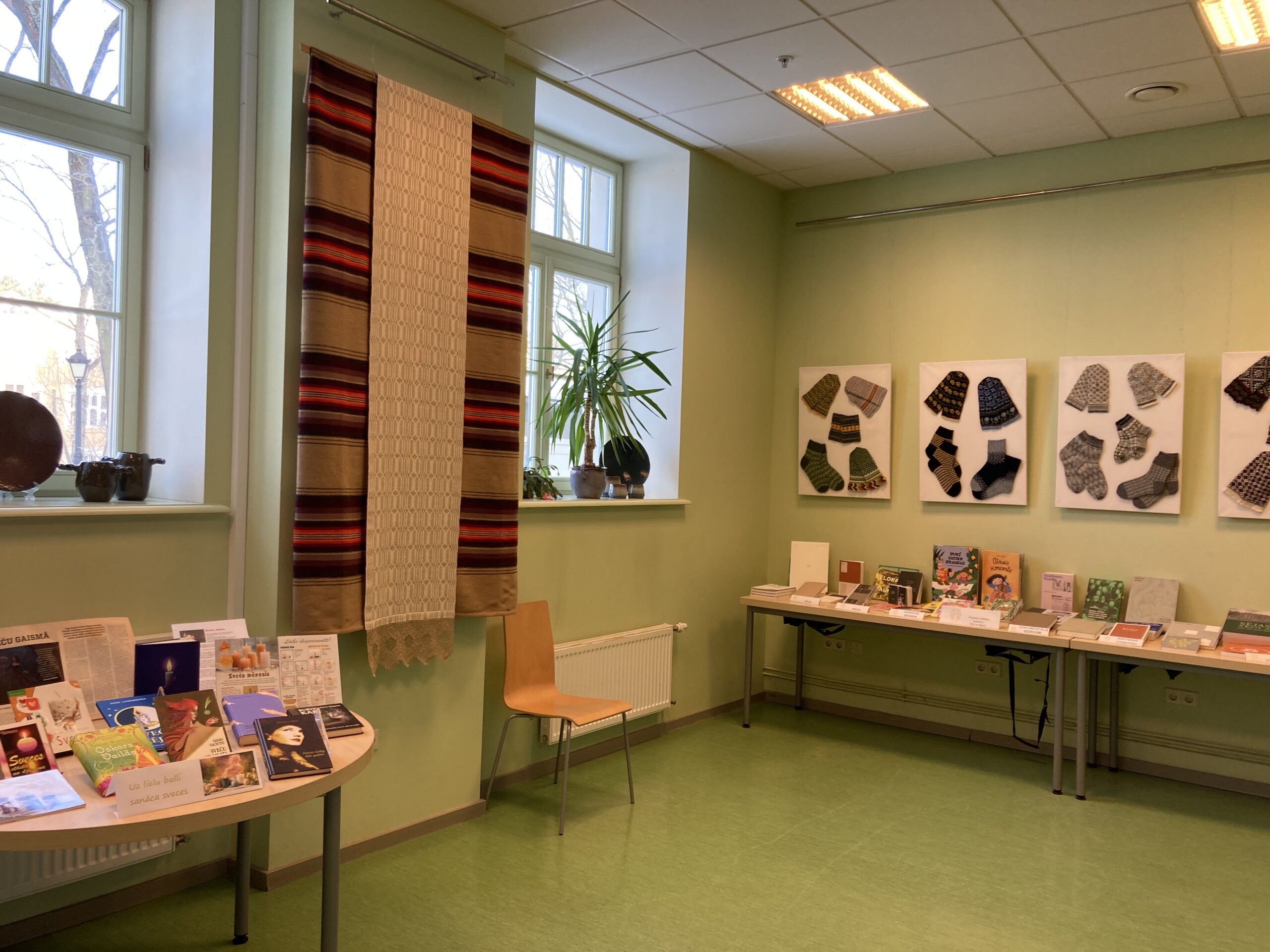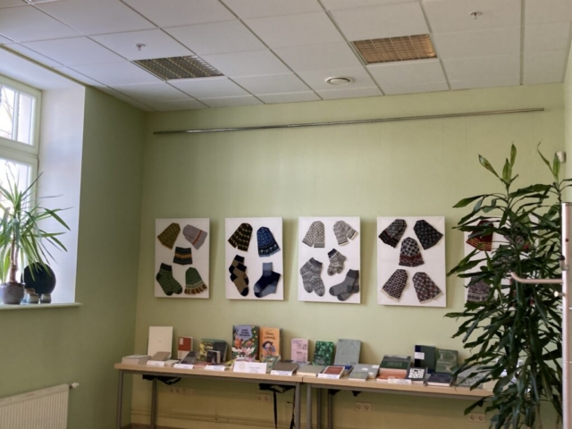 Laikā, kad dabā ziema vij sarmas un ledus mežģīnes, mūsu bibliotēkā viesojas Tautas lietišķās mākslas studijas ar saviem darbiem no māla, dzijas un audumiem – vāzēm, podiem, zeķēm, cimdiem, segām u.c.