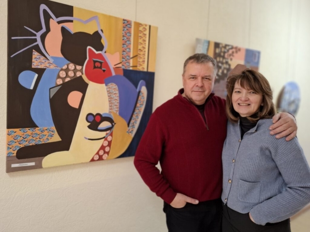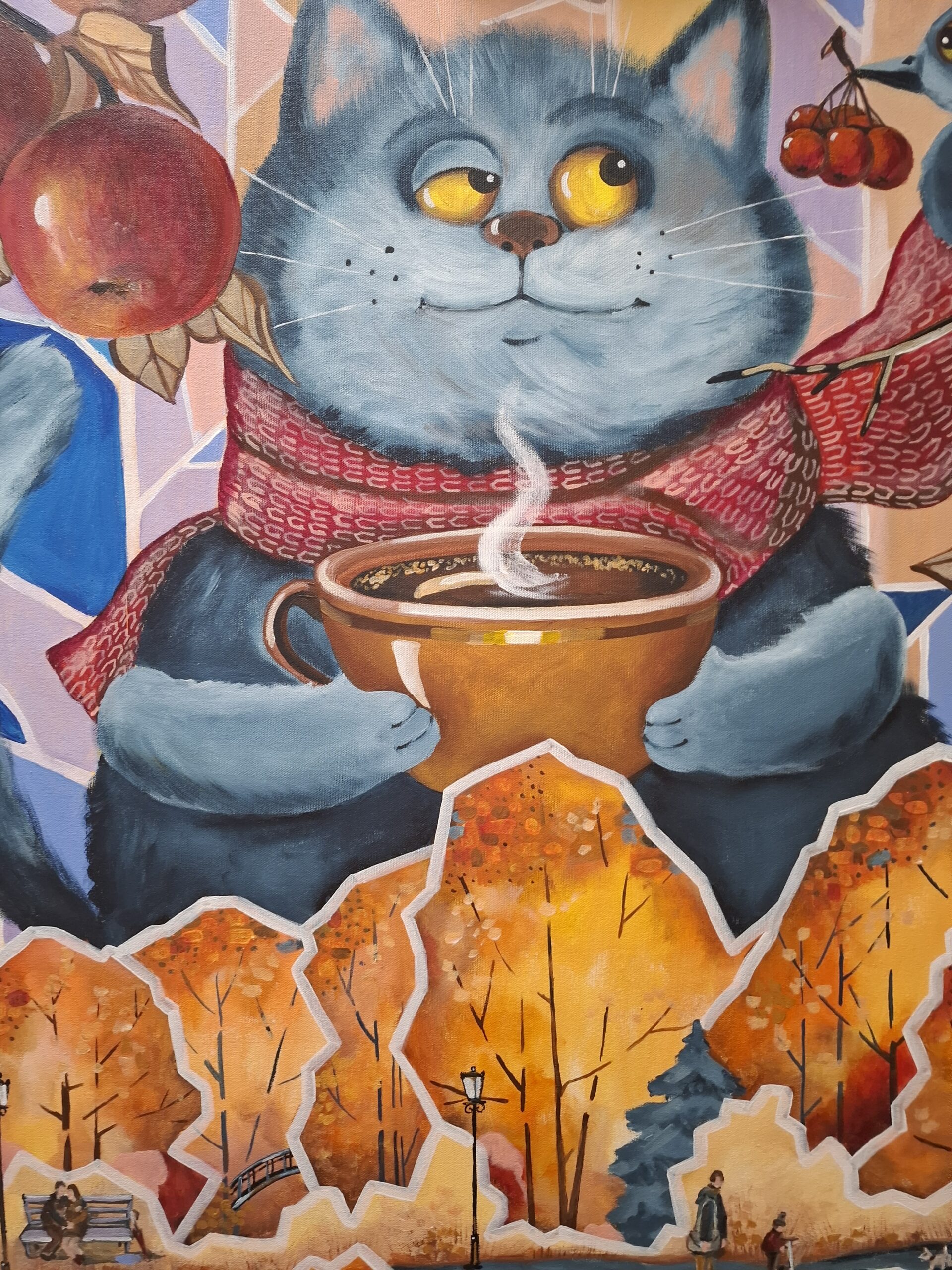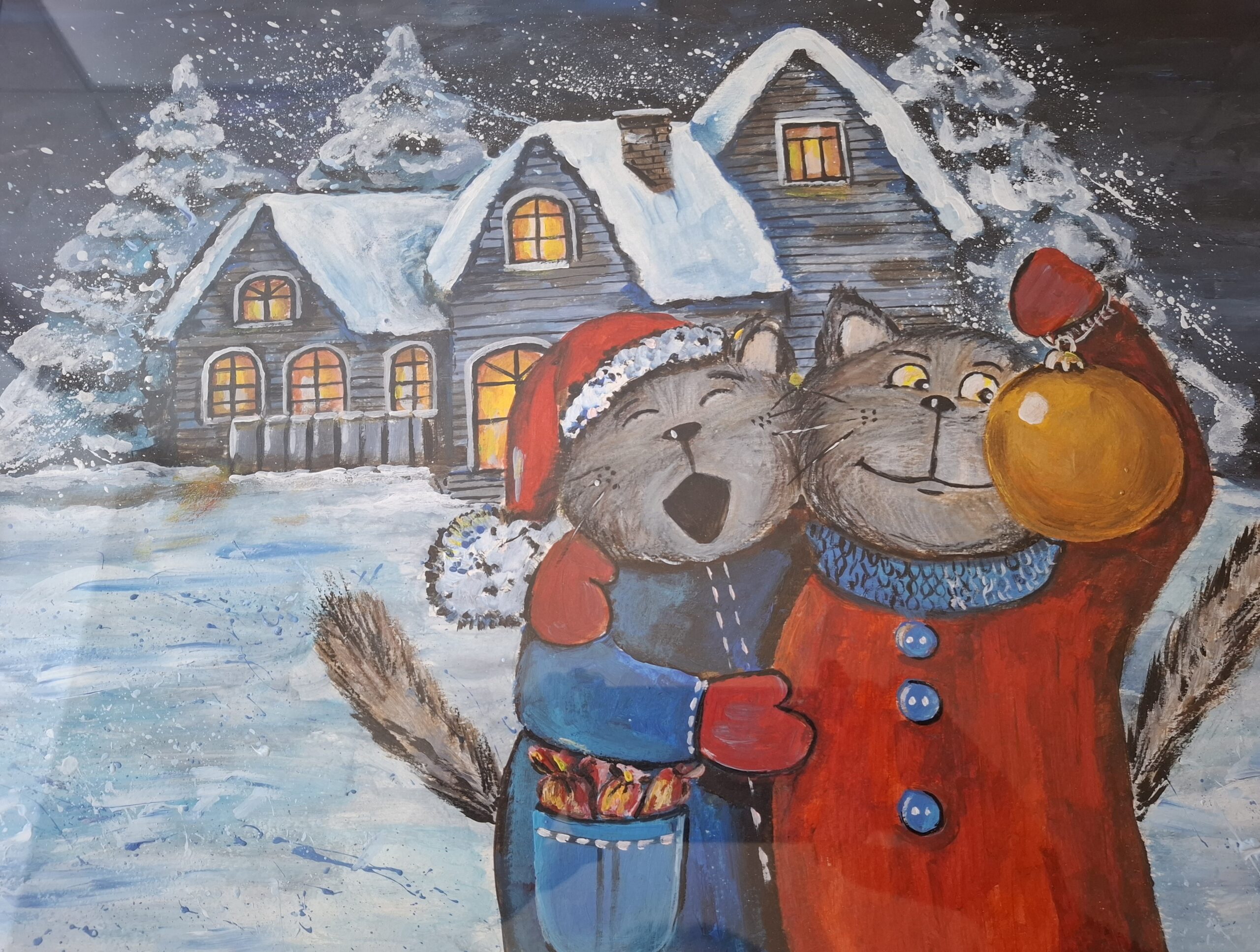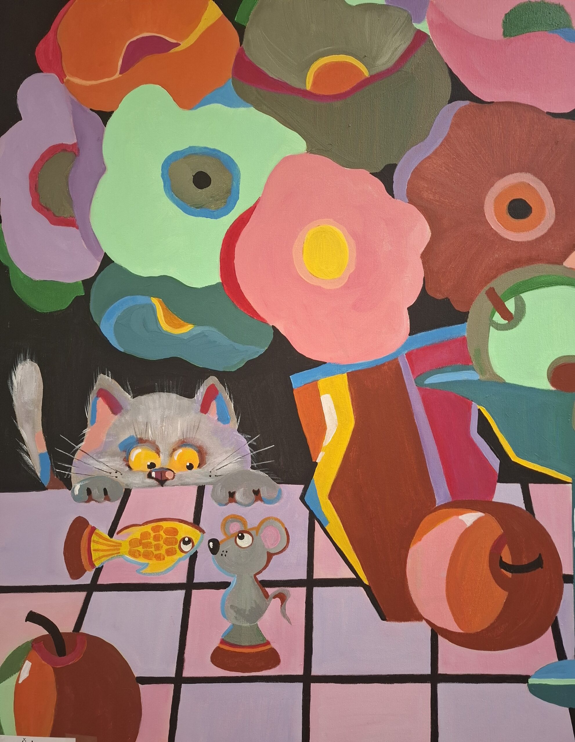 Ne velti izstāde saucas “Kaķis visu gadu“, jo katrā gleznā redzami kaķi: priecīgi un domīgi, draiski un sapņotāji.