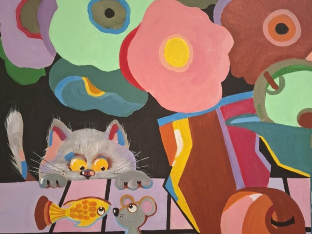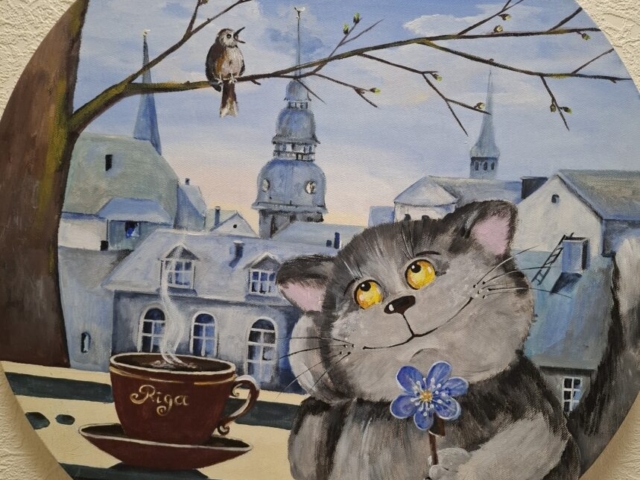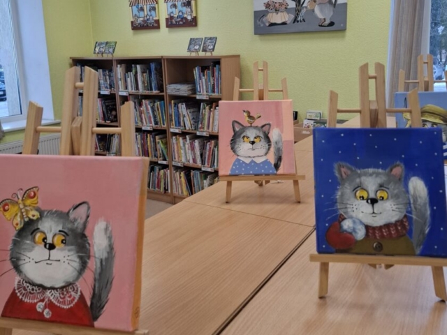Līdz 31.martam RCB filiālbibliotēkā ”Pārdaugava” (Dzirciema ielā 26) skatāma mākslinieces Olgas Žuravļovas gleznu izstāde “Kaķis visu gadu”.