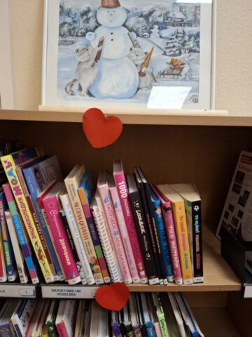 Aiz loga danco sniegpārslas, bibliotēkā virmo sirsnīgums, siltums, omulība.