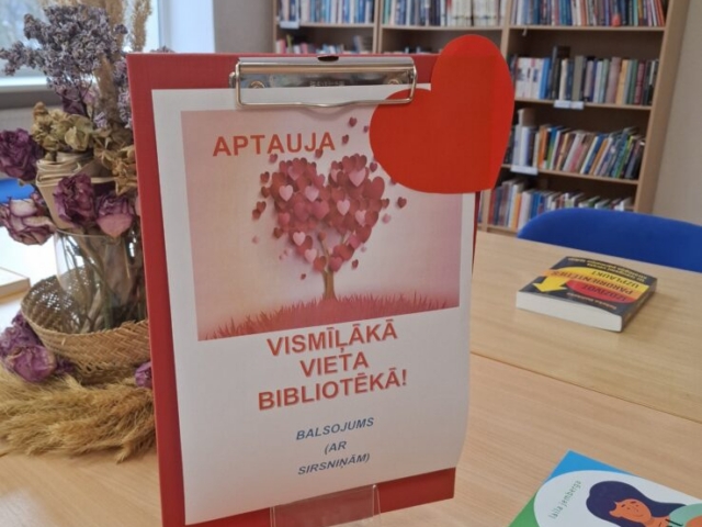 Februārī RCB filiālbibliotēkā “Pārdaugava” (Dzirciema iela 26) pilnā sparā notiek aptauja “Vismīļākā vieta bibliotēkā”. Balsojums ar mīlestības simbolu – sirdi.