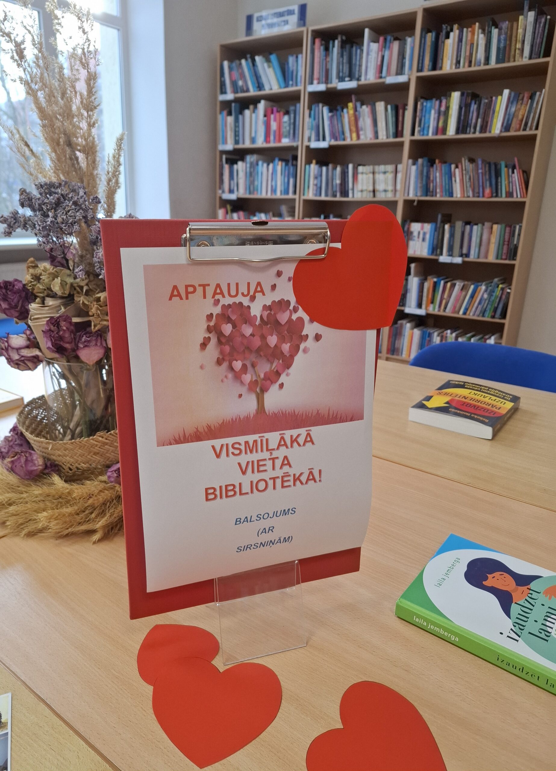 Februārī RCB filiālbibliotēkā “Pārdaugava’’ (Dzirciema iela 26) pilnā sparā notiek aptauja “Vismīļākā vieta bibliotēkā”. Balsojums ar mīlestības simbolu – sirdi.