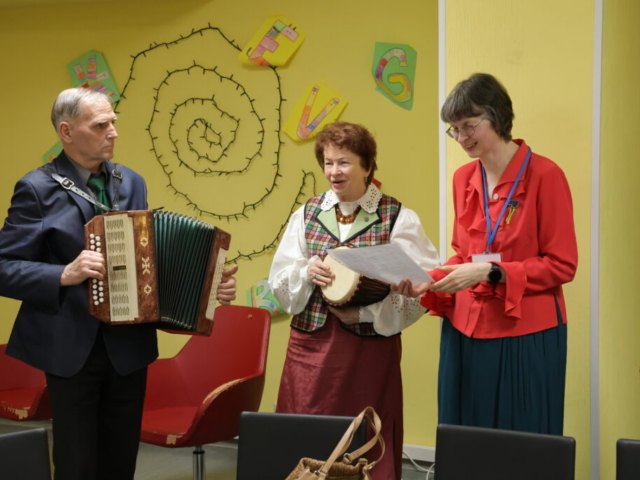 Pēc Lietuvas Republikas himnas “Tautiskā dziesma” kopīgas nodziedāšanas sekoja ieskats tās tapšanā 19. gs. beigās, pieminot himnas vārdu un mūzikas autoru – lietuviešu tautas atmodas kustības dalībnieku, publicistu un literātu Vincu Kudirku (Vincas Kudirka). Interesanti bija uzzināt, ka latviski “Tautisko dziesmu” atdzejojis Emīls Skujenieks (dzejnieka Knuta Skujenieka tēvs). Kā vēsturiska relikvija bija RCB Imantas filiālbibliotēkas galvenās bibliotekāres Evijas Lipartes no skolas laikiem saglabāta skolēna burtnīca ar himnas vārdiem uz aizmugurējā vāciņa.