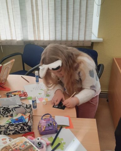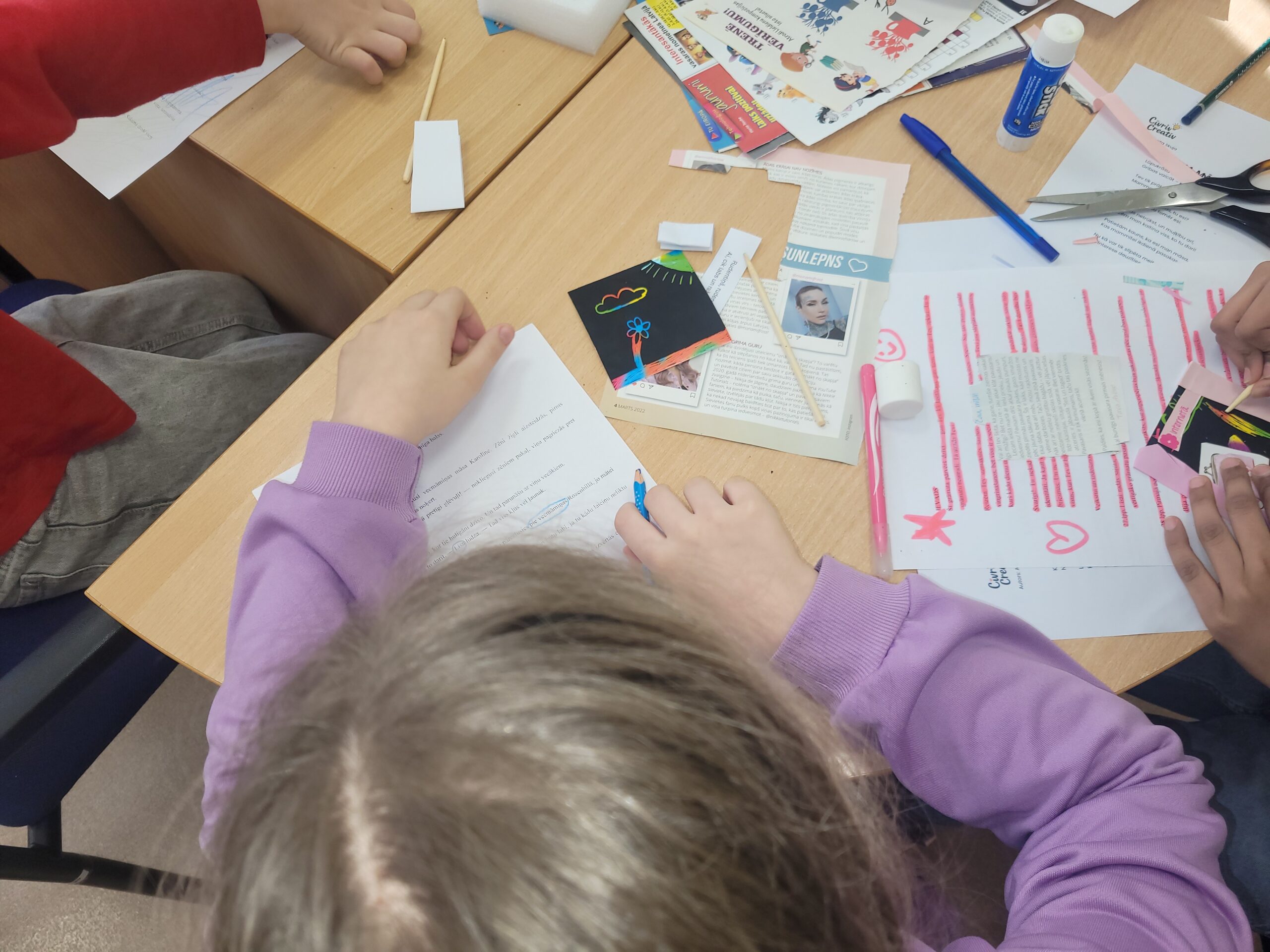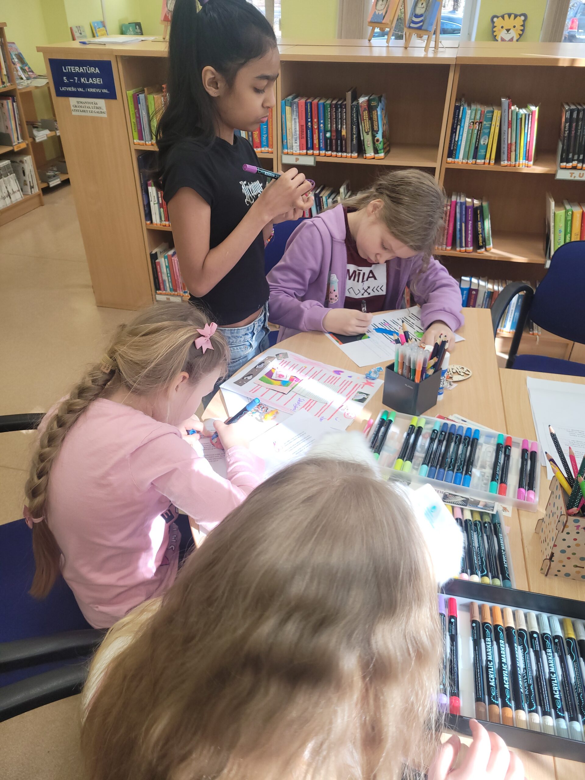 Savus darbus dalībnieki bagātīgi izrotāja, zīmējot, līmējot, pārveidojot attēlus un izmantojot melno skrāpējamo papīru. Noslēgumā katrs dalībnieks saņēma nelielu pārsteigumu – saldumus un koka olu, ko varēja izkrāsot pēc savām vēlmēm.