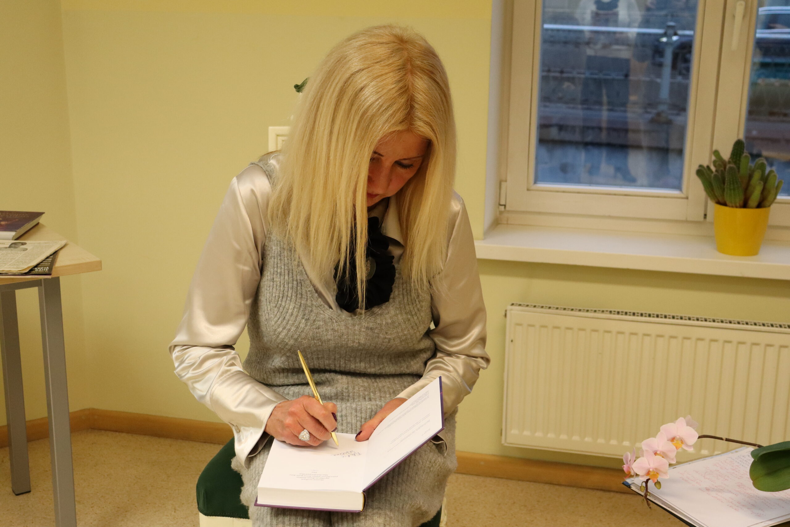 Elita Drāke stāstīja par notikumiem, kas ietekmējuši grāmatas rašanos, par darbu pie tās un par nākamās grāmatas iecerēm un tapšanu.