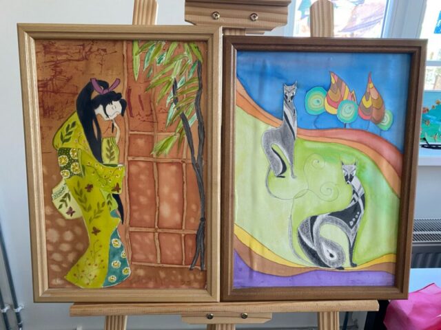 Tatjanas Surovjovas apgleznota zīda aksesuāru izstāde “Pavasara noskaņas” Bolderājā