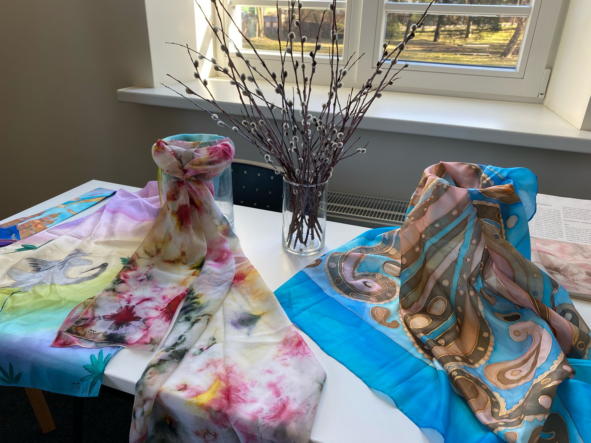 Tatjanas Surovjovas apgleznota zīda aksesuāru izstāde “Pavasara noskaņas” Bolderājā