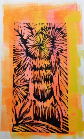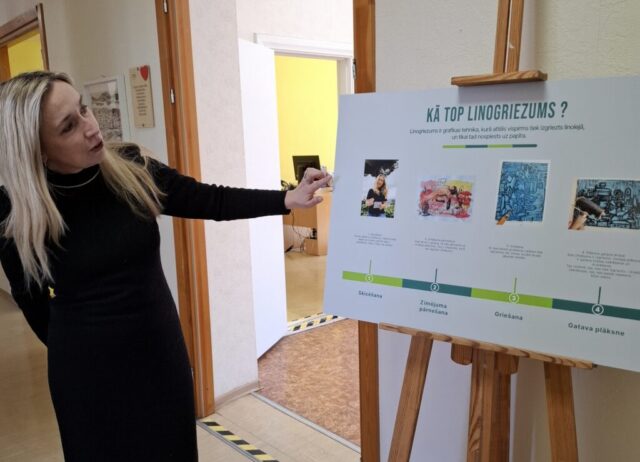 18.aprīlī (sestdien) plkst.12.00 bibliotēkas apmeklētājiem būs brīva iespēja piedalīties arī meistarklasē – ar iespēju interesentiem izveidot savu linogriezuma novilkumu (ilgums – ap 1,5 stundas).