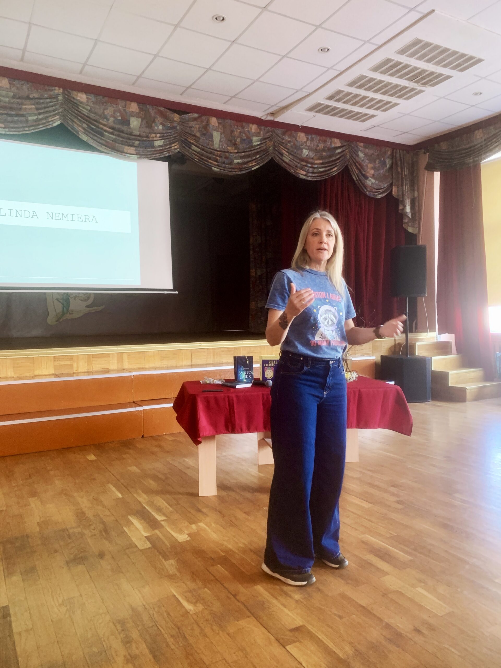 Rakstniece Linda Nemiera draudzīgā sarunā pastāstīja bērniem, kā top viņas grāmatas, kur rakstniece smeļas iedvesmu un, kā “idejas atlido”, lai atkal radītu jaunus stāstus. Skolēni uzzināja atšķirības starp fantāzijas un fantastikas žanriem, kā arī izzināja pilsētas fantāzijas žanru, kurā strādā rakstniece. Stāstījuma beigās rakstniece bija sagatavojusi nelielu viktorīnu skolēniem un pareizo atbilžu autori saņēma balviņas.