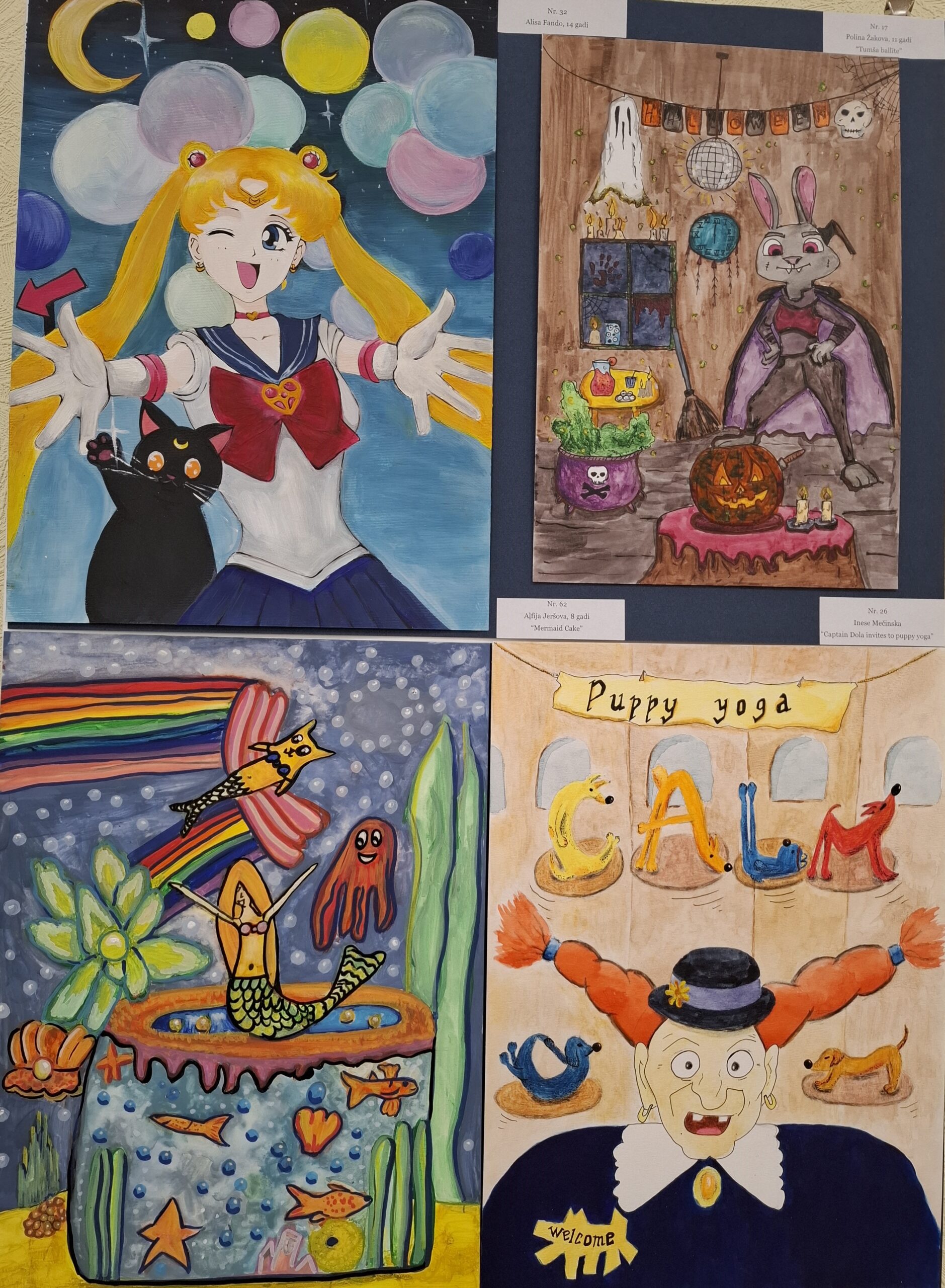 Jaunāko grupu dalībnieki radīja savu varoņu svētku kūku dizainus, meklējot katram tēlam piemērotāko noskaņu, krāsas un raksturīgās detaļas. Savukārt vecākie audzēkņi veidoja afišas, kurās dažādi varoņi – izdomāti tēli vai filmu, animācijas filmu un grāmatu personāži – aicina skatītāju uz savu ballīti, svētkiem vai īpašu notikumu.