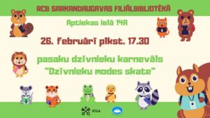 RCB Sarkandaugavas filiālbibliotēka ielūdz mazos lasītājus un viņu vecākus apmeklēt pasaku dzīvnieku karnevālu “Dzīvnieku modes skate”! Jūs gaida omulīga lasīšana, radoša darbošanās…